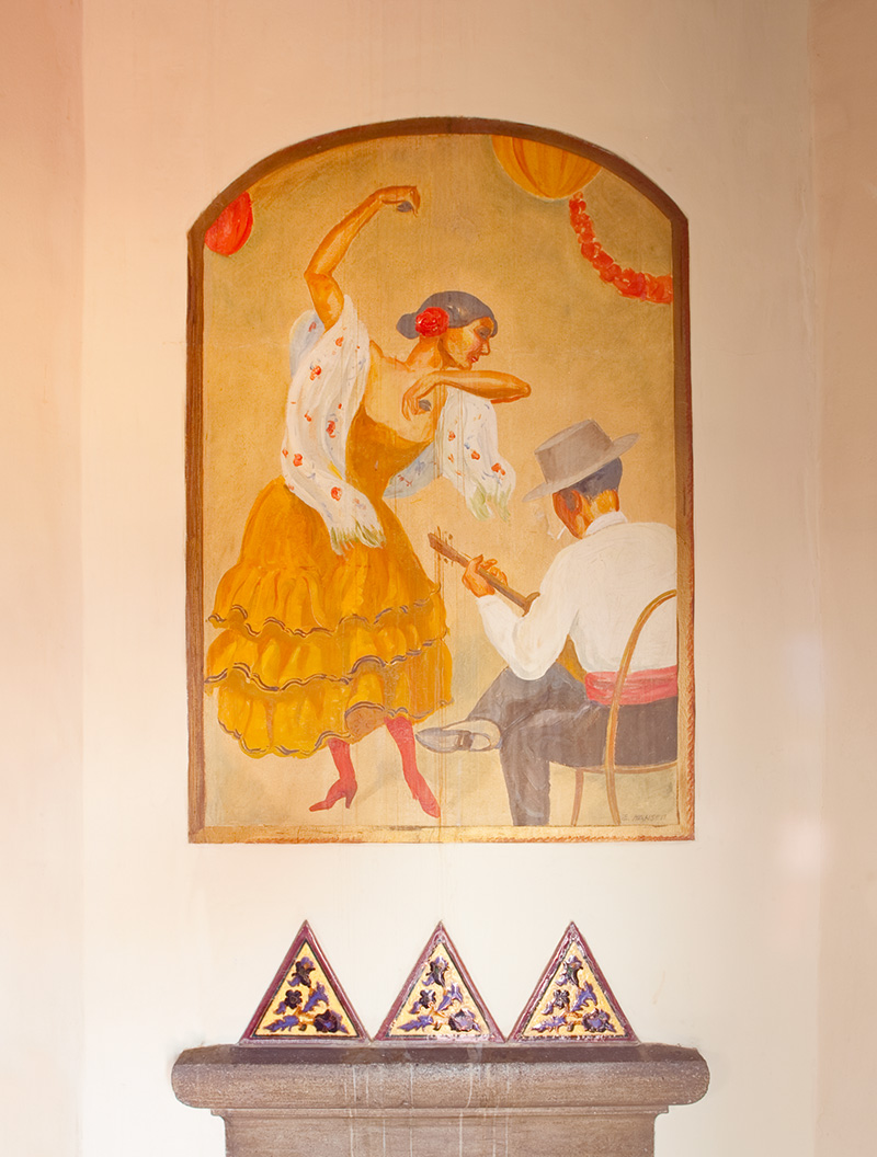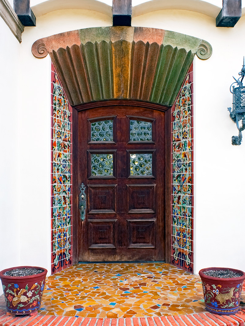 spots in all of Southern California. Situated near the Malibu Pier between popular Surfrider Beach and the Malibu Lagoon, the house boasts an exotic mix of Spanish and Moorish influences with dazzling displays of decorative tiles and one-of-a-kind craftsmanship including hand-carved doors, hand-painted frescoes, molded ceilings, distinctive cast ironwork and lead-framed bottle glass windows. Equally compelling is the story of the close-knit family who once lived here and whose aura continues to permeate the interior, where most of their original furnishings remain.
